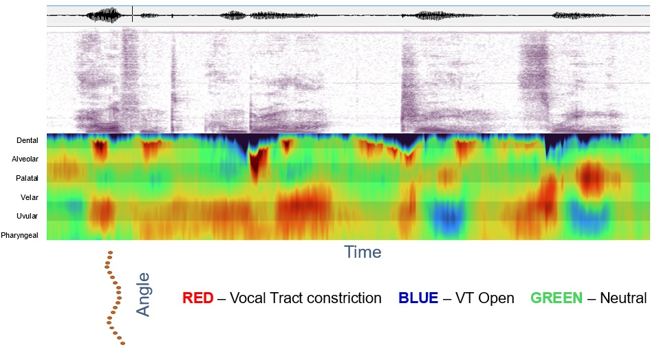 The Glosstrum can be thought of as an articulatory equivalent of the the acoustic spectrum. The Glossogram can be thought of as an articulatory equivalent of the acoustic spectrogram.